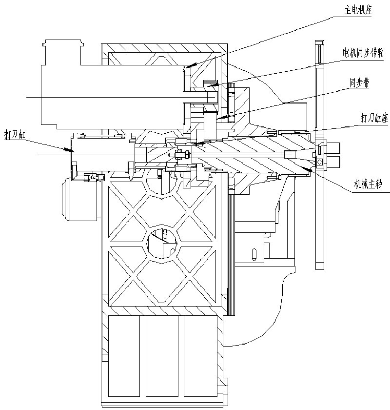 機床主傳動由主軸電機通過同步帶輪同步帶與主(zhǔ)軸同步帶輪直接相連來實現。主軸電機采用(yòng)交流主軸電機。機床主傳動係統結構圖如圖3所示。
