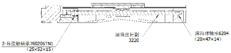 X、Y、Z三個坐標的進給運動由伺服電機驅動,通過彈性聯軸器直接將運動傳遞到絲(sī)杠,再由滾珠絲杠副(fù)將旋轉運動轉化為直線運動。各軸進給(gěi)傳動結構圖(tú)及軸承分節如(rú)圖4所示。
